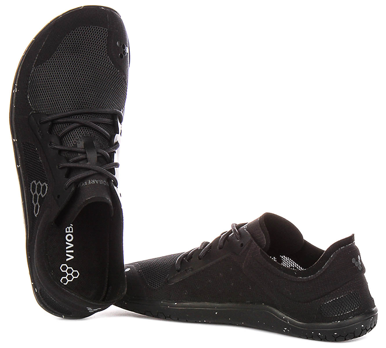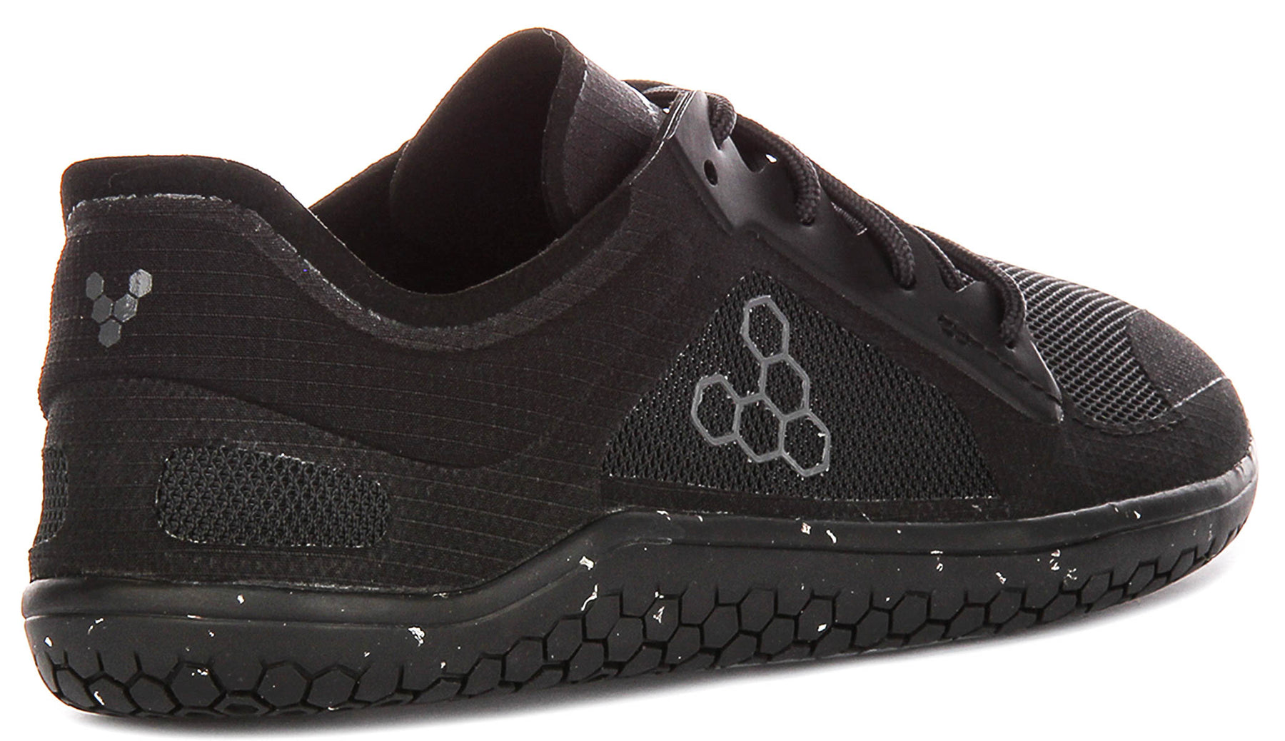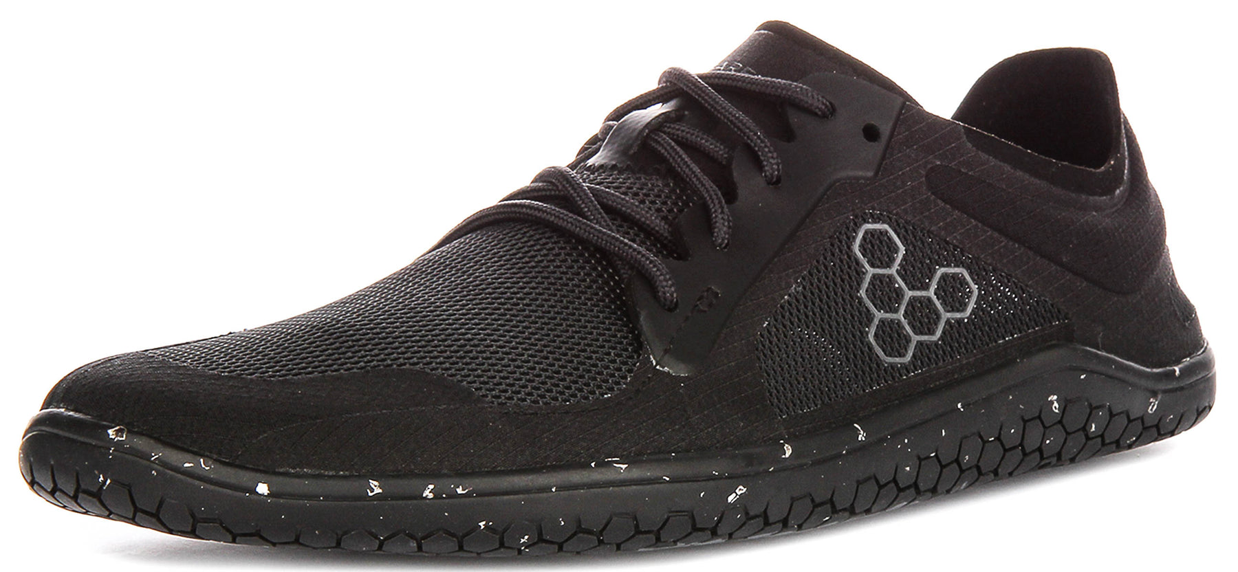 The Primus Lite 3.5 features a sophisticated black mesh outer material, ensuring optimal breathability and a lightweight feel throughout your wear. This innovative upper construction keeps your feet cool and comfortable, making them ideal for intense workouts or warm-weather wear. The design is subtly accented with the distinctive Vivobarefoot hexagonal logo in grey on the side, adding a touch of brand recognition without compromising the shoe's understated elegance. A secure lace-up fastening system with black flat laces integrates seamlessly into the upper for a precise and adaptable fit.